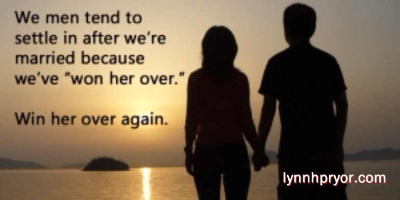 Remember the early days of your relationship: dating, courting, and wooing her? There was the element of the chase … trying to impress her … getting her to like you … or maybe just notice you! We men tend to settle in after we’re married because we’ve “won her over.”