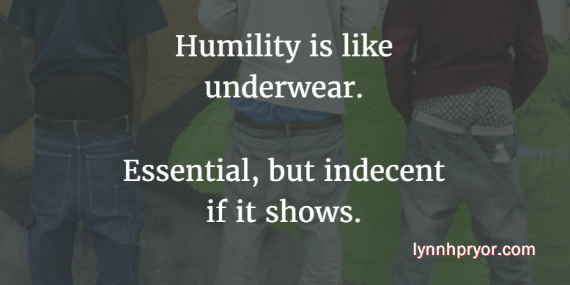 Humility is a virtue we all know we need, but if we know we have it … well, maybe we don’t have it after all. I like the way Helen Nielsen said it. “Humility is like underwear; essential, but indecent if it shows.”
