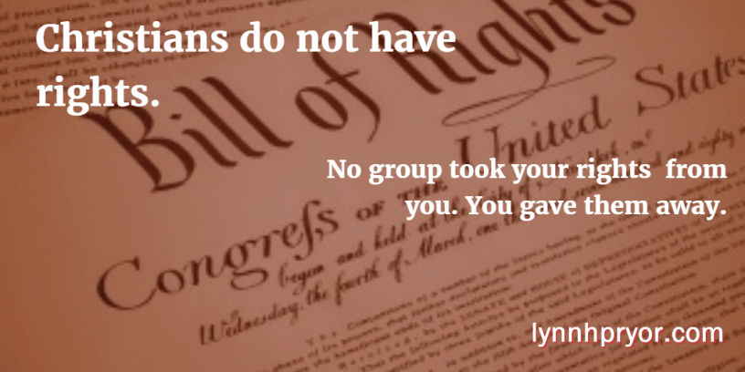 I’ll admit it. I like my rights. But I don’t want to address our rights as American citizens. I want to address our rights as followers of Christ.