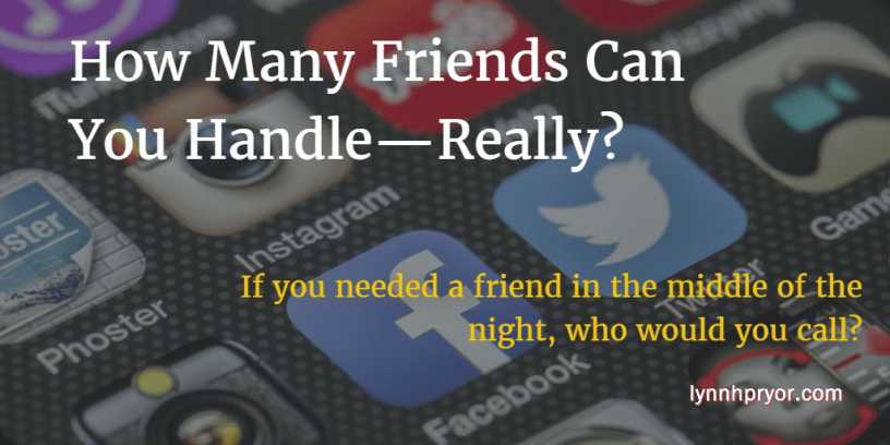 Have you encountered anyone who has a sense of pride—even braggadocio—because of the number of Facebook friends they have? I don’t know if these folks are trying to boost their sense of self-worth or make up for the lonely years in the middle school lunchroom. I wonder.