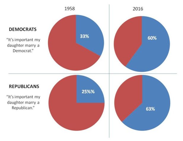 The New York Times recently reported how this division affects potential marriages. We don’t want our kids to make dumb mistakes like run with scissors, poke a skunk with a stick, or marry someone who might have a different political view than us.