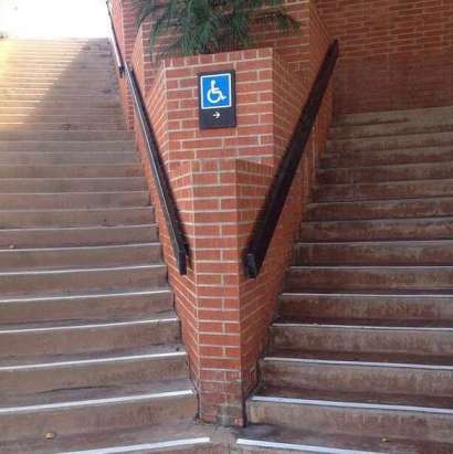 Just labeling something “wheelchair accessible” doesn’t make it so. Sure, the right set of stairs has fewer steps, and it is certainly an easier climb. But for those who can’t navigate steps, a few steps can be just as insurmountable as many.