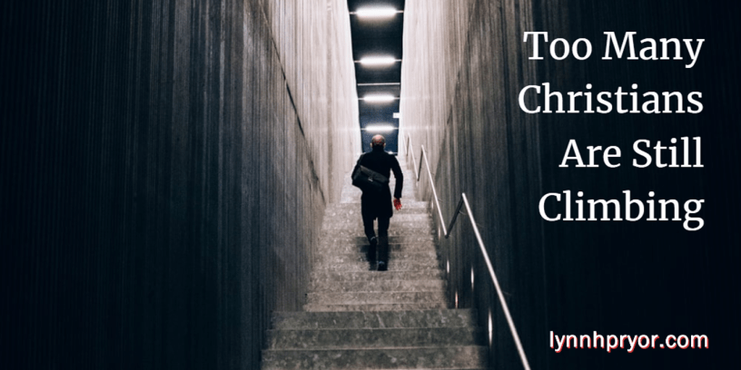 Let me be clear: In Christ, there are no steps to climb. Zip. Zilch. Nada. Jesus climbed those steps for us and now He reaches back, holds out His hand, and says, “Trust Me.” And He lifts us up to be with Him.