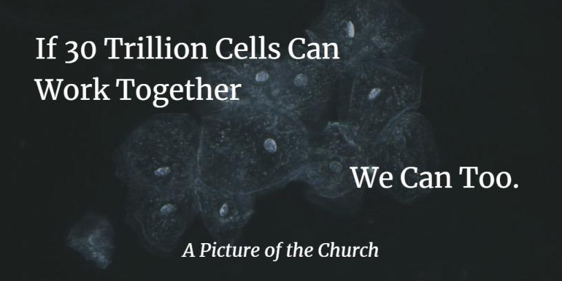 Of course, not a single one of your cells resembles you, but when those 30 trillion cells are together, there’s you! In the church, no one of us fully resembles Christ, but when we come together—acting as one, serving together, and loving one another—the world sees Jesus. Here we are, an unlikely assortment of people, yet together we display Jesus to the world!