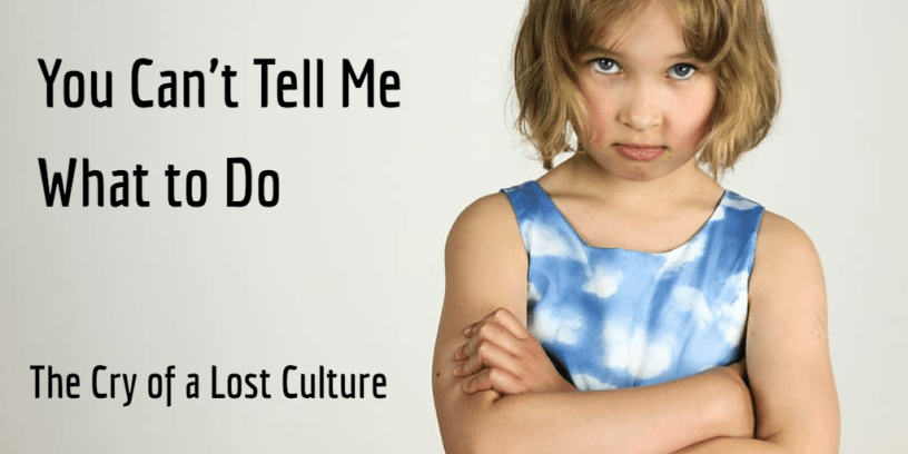 Unfortunately, we are growing up into childish adults. “You can’t tell me what to do” has become the cry of a whole culture.