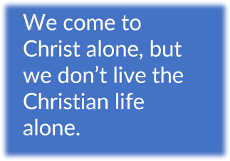 We come to Christ alone—it is an individual decision—but we don’t live the Christian life alone. We are called the body of Christ, and the individual parts of the body need the other parts of the body. Going it alone with Jesus is not an option.