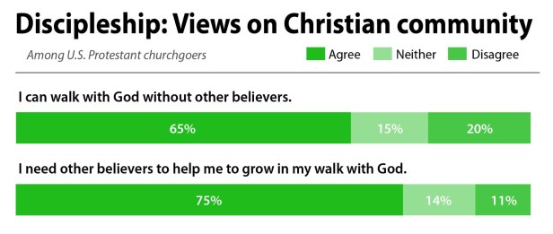 There’s another telling statistic from the same Lifeway research—and it appears contradictory. In the same survey where 65% of the respondents said they can walk with God without other believers, 75% of them also said they need other believers to help them grow in their walk with God.