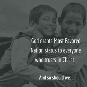 God grants Most Favored Nation status to everyone who trusts in Christ. And so should we. We must step outside our comfort zones and build relationships with others in the church who are different from us.