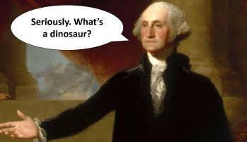Take George Washington. Father of our country. Great leader both militarily and politically of this young country experimenting with democracy. Can you imagine trying to explain to him the concept of TV or Wi-Fi? C’mon, President Washington didn’t even know about dinosaurs. (Fossilized remains of dinosaurs were not recognized as such until 1841—42 years after Washington died.)
