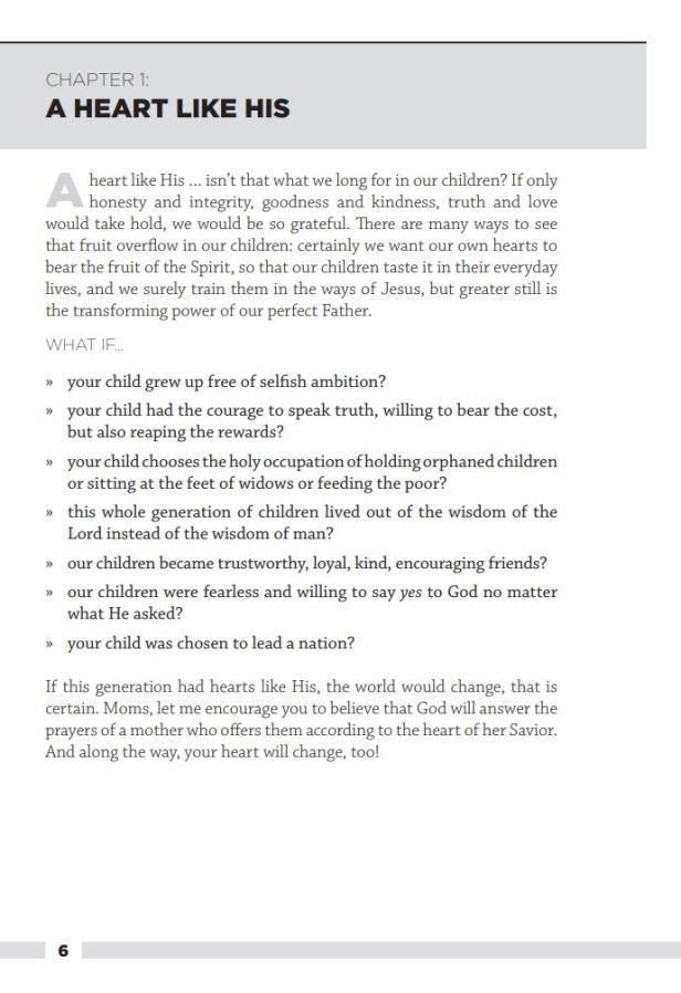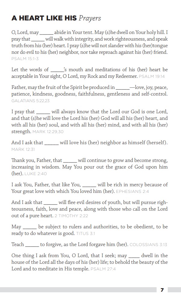 Mom’s Prayer Journal includes 14 chapters like this. This is not a book to be read once; it’s a book you can regularly pray through. And there’s no age limit in the prayers offered. Shouldn’t we pray for our adult children as well?