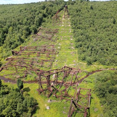 In 1882, the New York, Lake Erie and Western Railway needed a branch lane out of the Elk County coalfields. They just faced one obstacle: a ginormous, deep valley called the Kinzua Valley. In an amazingly short 94 days, they constructed a railroad bridge sitting atop twenty towers. For a period, it was the tallest railroad bridge in the U.S. Touted as the “Eighth Wonder of the World,” some of its towers were taller than the Brooklyn Bridge.