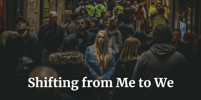 This isn’t just a generational thing. This self-centered focus Millennials inherited from the early generations is prevalent throughout our society. It’s not limited to one generation. We’re seeing this throughout our society, and what we’re losing in this shift is a focus on the community. We don’t think about others. We don’t think about our connections to others and our need for one another.